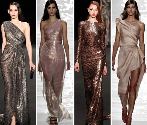 Il est supposé que les favoris de cette nuit du Nouvel An seront des robes de couleur or et argent, mais non moins pertinentes seront d'autres colorants, tels que le violet, le vert foncé ou le gris saturé.