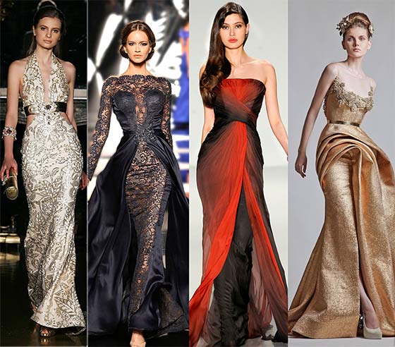 Il est à noter que la soie, le satin et la mousseline restent à la mode cette année. Les robes les plus actuelles seront avec des inserts de plusieurs types de tissus, surtout s'il s'agit de fourrure ou de dentelle blanche.