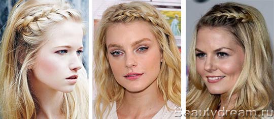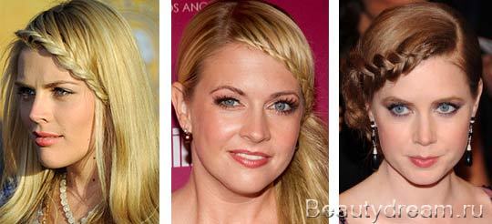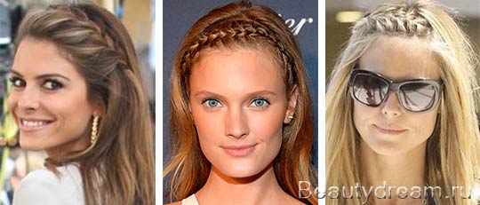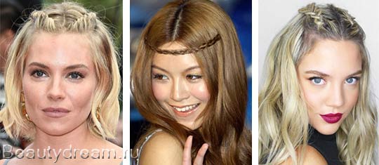 Idées pour les tresses sur un bang illimité. Vous pouvez faire non pas un, mais quelques tresses, ou tresses-flagelles tresse.