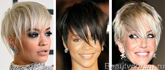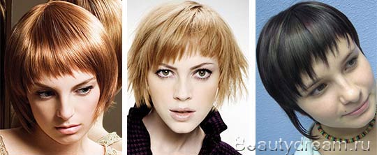 Avec les cheveux courts, la plus longue frange semble la plus spectaculaire. Ce type convient aux faces ovales, rondes et triangulaires. Mais, si vous avez les cheveux bouclés, vous devrez utiliser un styler régulier, sinon vous aurez l'air tout simplement comique.