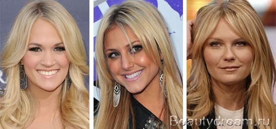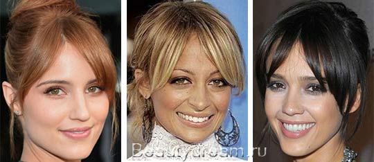 Les filles avec un visage en forme de cœur (de telles filles ont souvent une ligne de poils inégale sur le visage, sa frange lisse, et de plus, elle rend les proportions du visage plus uniformes).
