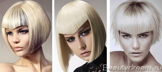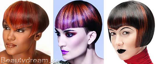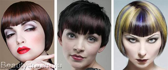 Ce coup souligne les yeux. La longueur de la frange triangulaire varie de très courte, quand la partie aiguë atteint à peine le milieu du front, à la longue, quand la partie aiguë atteint le pont du nez. Une version courte adapte les filles avec un petit visage, comme l'augmente visuellement. Les filles avec de larges pommettes et un visage allongé correspondent à une version étendue.
