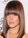 La version classique d'un coup droit allongé donnera aux cheveux un volume visuel. Ce type de frange est une option idéale pour une personne avec un front haut et un ovale allongé. Pour les femmes avec une forme de visage rectangulaire ou carrée, une longue frange oblique sera pertinente, il décorer gracieusement la forme triangulaire. Un bang droit et superposé est comme une fille joufflue.