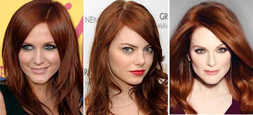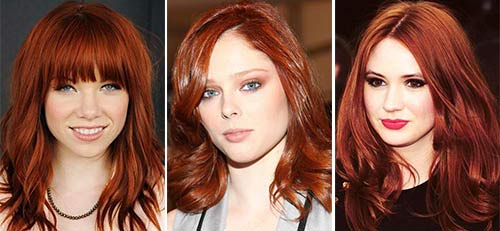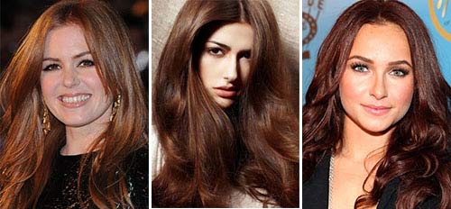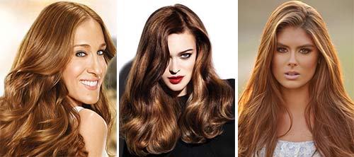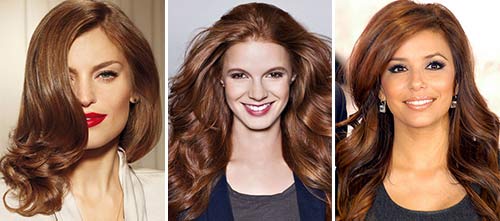 Il n'est pas difficile de deviner que la couleur des cheveux pour l'automne de type couleur peut être n'importe quoi - au moins le chocolat noir, mais au moins doucement d'or. L'essentiel est la présence de notes chaudes et jaunâtres. La palette de couleurs dans ce cas sonne très "délicieuse": noisette, cannelle, cognac, miel, caramel ... De plus, vous aurez l'or et le cuivre, ainsi que le renard et le rouge chatoyant. Mais le pigment bleu (prune, cendres, tons de lilas) - pas votre cheval.