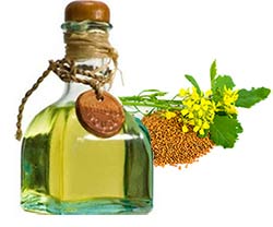 L'effet de l'huile de moutarde est renforcée en combinant avec les huiles essentielles qui ont également un effet bénéfique sur les cheveux. Ainsi, avec la perte de cheveux, l'huile essentielle de moutarde est complétée avec l' ylang-ylang et la verveine, l'aira, l' arbre à thé et la lavande , le bois de rose et l'encens, le romarin , le cèdre et la menthe , le pin, la coriandre et le cyprès. De tels mélanges rivalisent bien avec la perte de cheveux, et stimulent également la croissance de nouveaux.