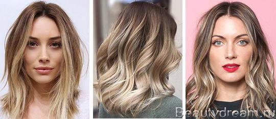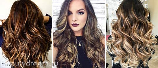 Avec la couleur principale, brun foncé ou brun, de larges brins brillants apparaissent. Pour obtenir un contraste maximal, la tonalité des zones en surbrillance est utilisée pour mettre en évidence la couleur de base aussi brillamment que possible. En 2017 - 2018, la couleur beige-marron ou crème-noisette est généralement utilisée pour une large gamme.