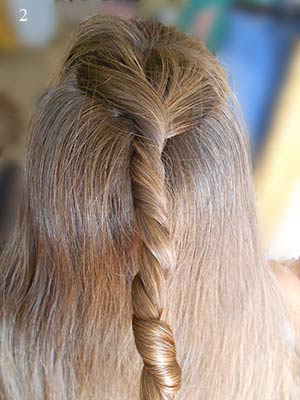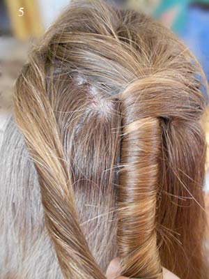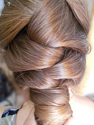 ![]() | 7. Les quelques brins inférieurs sont très proches l'un de l'autre, de sorte qu'un cocon particulier de cheveux se révèle. |