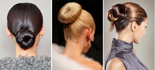 La version soignée de la coiffure est un galet lisse. Cela devra être fait lors d'une grande ouverture, et il est facile de le créer. Recueillir les cheveux en queue de cheval (utiliser un sérum lissant et un large peigne). À volonté, vous pouvez faire une séparation - mais ce n'est pas nécessaire. Ensuite, mettre un rouleau rond sur la queue, répartir les cheveux sur toute sa circonférence, en repliant les pointes. C'est tout!
