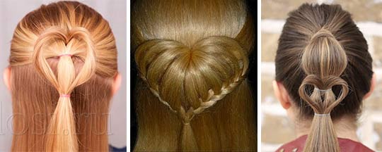 Il y a beaucoup d'options pour placer un coeur sur la queue. Il peut être tordu à partir de la tresse et attaché avec une bande élastique, ou peut être fait avec le tissage.