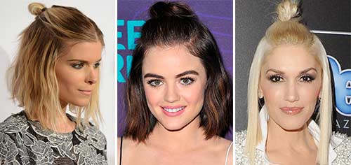 La coiffure a un autre nom - Khan (de l'anglais Hun, qui se traduit littéralement par "demi-botte" - demi-chignon). Vous pouvez le faire différemment, en fonction de votre humeur. Par exemple, il peut ressortir au centre de la tête ou s'allonger en ouvrant les oreilles; il peut être «posé» sur la nuque, libérant une pointe libre des cheveux ... Quoi qu'il en soit, la création de cette image de mode nécessite littéralement quelques secondes de votre temps. Et les accessoires complexes ne sont pas nécessaires.