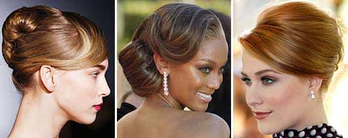Cette coiffure est pratique, et elle vous décorera au travail et à la sortie de la fête. Elle va ajouter à vous la féminité, rendant la silhouette - plus mince, et le cou - plus mince et plus long.