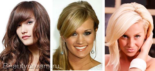 La frange, posée sur le côté, est idéale pour les propriétaires d'un visage carré et rectangulaire. Avec un large visage assez pour faire une transition en douceur de la frange à la longueur principale des cheveux.