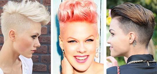 Fondamentalement sur les filles, il est possible de voir une telle coiffure: le haut allongé, et une nuque et un whisky presque complètement dénudé. Cette option vous permet d'empiler le dessus de différentes manières, en changeant votre style même tous les jours.