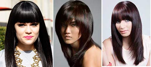 Les longs cheveux noirs sont bien combinés avec un coup droit aux sourcils. Couper l'échelle et la cascade mettra l'accent sur la beauté des boucles lisses et brillantes. Si les cheveux sont ternes et pas trop épais, il est préférable de privilégier les coupes de cheveux multicouches "Aurora", "loup", "italien".