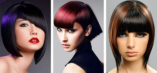 Coupe de cheveux courte et longue frange - l'un des plus à la mode pour les options de coiffure d'aujourd'hui. Pour les boucles ont l'air unique, la frange peut être mis en évidence avec des couleurs vives.