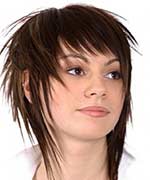 Coiffure "Debut" va cacher les défauts de la forme du visage . Des brins tombants et un coup oblique cacheront une partie d'un visage angulaire rond ou large, ne focalisant pas l'attention sur ces défauts.