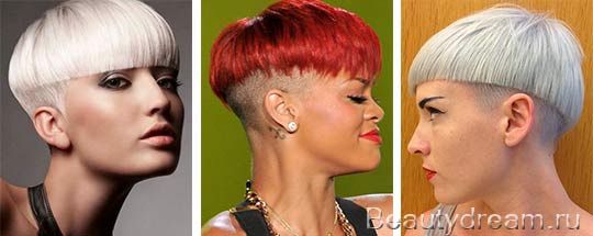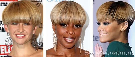 Qu'est-ce qui le rend si inoubliable? Contraste lisse de la zone occipitale-temporale, ainsi qu'un volume "cap" à l'avant. La longueur du bang peut être n'importe quel, mais le plus souvent, il est effectué jusqu'à la ligne des sourcils. Il semble donc long, soulignant efficacement les zones finement coupées sur les côtés (principalement à l'aide d'une tondeuse), ainsi que le volume derrière. D'ailleurs, l'arrière de la tête et le whisky décorent parfois avec des motifs ou "géométrie", découpant, disons, un triangle.