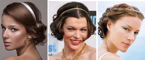 Très brillante et créative va chercher des coiffures pour une coupe faite dans le style grec , et, la longueur des cheveux n'a pas d'importance (bien sûr, la longueur minimale de 10-15 cm devrait toujours être présente, car pour créer des cheveux, les boucles devraient boucler en boucles).