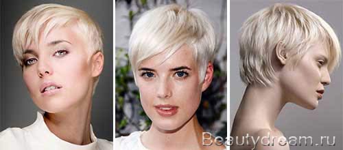 La combinaison d'un pixy ultra-court avec la même longueur de bangs est très "explosive", alors essayez-le avec soin. La coiffure n'aura l'air belle que si vous avez un visage idéal-ovale et des traits du visage qui sont habituellement appelés corrects.