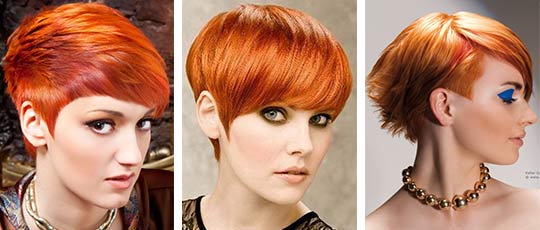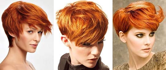 Des pointes en lambeaux, des "plumes" de différentes longueurs et asymétrie sont les techniques principales qui donneront une coupe courte aux cheveux roux un maximum de féminité et de coquetterie.