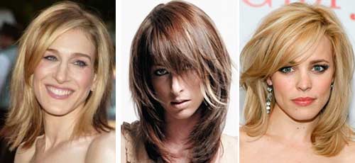 Mais les cheveux longs et raides, la séparation droite au milieu de la tête, les cheveux très courts ne devraient pas être choisis. Toutefois, si vous voulez porter des cheveux longs, vous pouvez utiliser une variété de coupes de cheveux, en cascade , ainsi que des boucles de différentes longueurs. Les cheveux, descendant les escaliers le long du visage, semblent très impressionnants.