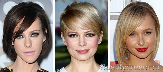Pour le type de personne en question, les coupes courtes s'adapteront au milieu des joues avec des cheveux luxuriants. Longs brins droits aux oreilles et en bas, une frange basse aux sourcils et plus bas raccourcissent considérablement le visage entier. Les personnes qui ont un front haut, s'approcheront de la coupe d'un carré ou d'un haricot , légèrement raccourcies par l'arrière, vous donneront de la pertinence et de l'originalité. Pour les cas particuliers, il est possible de tordre légèrement les pointes, cela ajoutera de la rigidité.