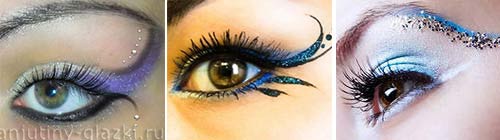 Et si vous décidez d'un costume de carnaval, le maquillage doit être pensé dans les moindres détails. Ainsi, vous pouvez devenir une fée à l'aide d'ombres ressemblant à la gelée blanche. Si le costume le permet, vous pouvez couvrir vos paupières avec de la poussière dorée, des nuances de nacre, des paillettes ou des strass. La chose principale n'est pas tous ensemble.