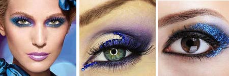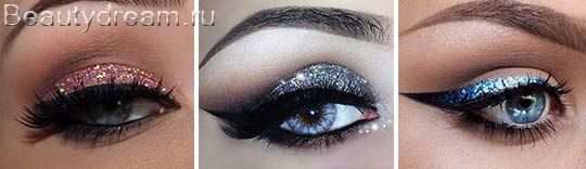 Le réveillon du Nouvel An, les filles aux yeux bleus sont invités à appliquer des reflets scintillants avec une teinte bleu vif, argent ou rose froid sur les paupières. Vos yeux brillent comme un conte de fées!