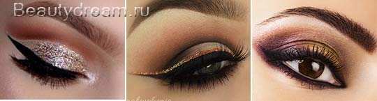 Donc, pour le maquillage des yeux du Nouvel An classique, nous avons besoin d'ombres de teintes convenables, eyeliner ou eye-liner, mascara avec l'effet de volume, vous pouvez utiliser imperméable, car cette fête est plus longue que d'habitude.