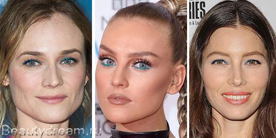 Il est à noter que la couleur bleue des ombres s'adapte absolument à tout type d'apparence, mais il est important de trouver la nuance parfaite. Pour les filles blondes, la meilleure option sera les ombres bleues ou bleues.