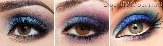 Selon l'occasion, en complément des ombres bleues, vous pouvez utiliser du mascara noir ou du mascara pour les cils bruns. Crayon noir ou eyeliner le long de la ligne de croissance des cils de la paupière supérieure ont également un endroit à être.