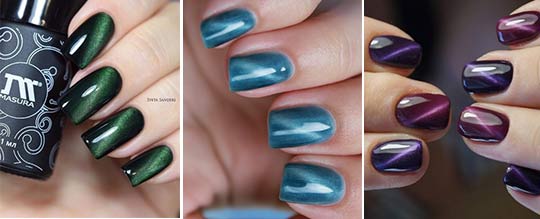 klassno.top Conception de clous "Cat's Eye" est devenu l'une des tendances modernes populaires en manucure. Un charme particulier est donné à ce type de conception d'ongle par une bande iridescente qui apparaît au centre de l'ongle. Il améliore la profondeur de la couleur et crée un effet volumétrique de 3 jours. Obtenir un tel effet était possible avec un vernis magnétique. Une formule spéciale vernie sous l'influence d'un aimant spécial forme une bande lumineuse au centre de l'ongle, qui ressemble à un œil de chat.