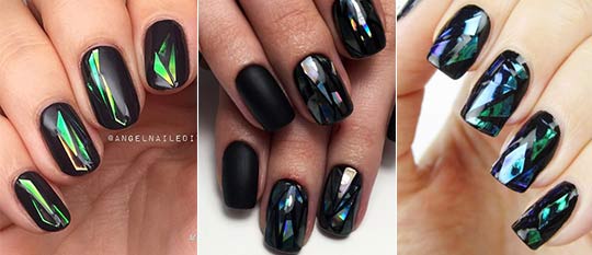 Fond noir - l'un des plus avantageux pour une manucure en verre. Les figures holographiques transparentes créeront un volume et une profondeur incroyables, donneront à votre image une touche de mystère et de chic.
