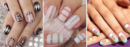 La géométrie élégante est la tendance la plus à la mode de la saison à venir. Pois, diamants, carrés ou triangles de tous les "calibres" peuvent être librement placés sur les ongles à la fois seul et en combinaison avec d'autres modèles de l'ordinateur portable en dessinant, ont des limites floues et claires. Eh bien ici vont s'adapter et bandes à la mode - ils peuvent être supprimés, en dessinant une figure qui vous intéresse, ou de laisser comme un décor. Comme une variante de la manucure géométrique est la division à la mode de l'ongle en carrés ou des segments avec des angles vifs.