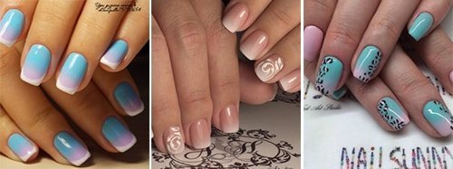 Les motifs peuvent être dégradés (une combinaison des couleurs les plus délicates), sans prétention (contrastant), et aussi plutôt complexes, réalistes. Et peu importe ce que sont vos «griffes», qu'elles soient cultivées ou naturelles - une manucure réussira dans tous les cas.