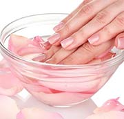 Bains chauds avec du sel et des huiles essentielles. Ajoutez 2 cuillères à soupe. cuillères de mer ou de sel de table dans 0,5 litre d'eau tiède, puis verser 2 à 3 gouttes d'huile essentielle (lavande, bergamote, romarin, agrumes). Tenez les mains dans la solution pendant environ 15 minutes. Le bain aide à renforcer les ongles et accélérera leur croissance.