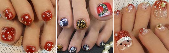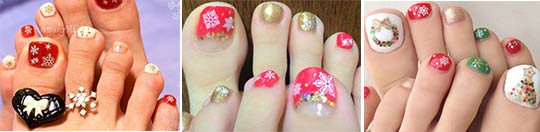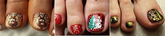 Pédicure pour la nouvelle année sera ennuyeux sans utiliser des dessins et des autocollants à thème. Eh bien, comment pouvez-vous faire sans le père Noël traditionnel, le cerf, bonhomme de neige et d'autres symboles du Nouvel An. Ces petits animaux mignons ajouteront à votre image une note ludique.