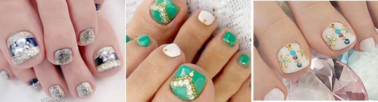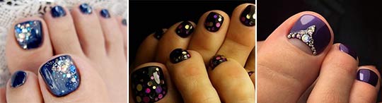 L'accent principal devrait être sur le pouce, et le reste devrait être en harmonie avec lui en couleur. Les pierres peuvent être choisies dans différentes couleurs et tailles, mais attention que la pédicure semble soigné.