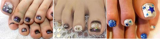 Une pédicure avec des strass est parfaite pour un réveillon du Nouvel An. Il va transformer vos jambes en un véritable bijou. Pour regarder cher et élégant, vous devriez observer quelques règles pour l'utilisation de strass. Ne collez pas beaucoup de pierres à la fois, afin de ne pas avoir l'air insipide.