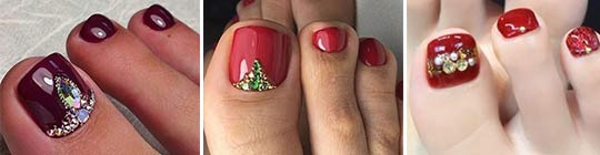 La couleur rouge symbolise le luxe, la passion et la richesse. Pédicure rouge est l'un des plus populaires à la célébration du Nouvel An depuis plus d'un an. Sur un fond rouge chic, strass, paillettes, paillettes.