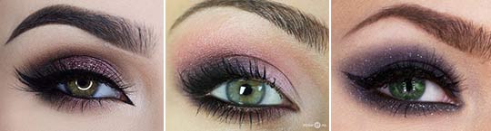 Les nuances de violet foncé, de prune et de lilas contrastent avec le vert, de sorte qu'ils peuvent rendre les yeux verts aussi expressifs que possible.